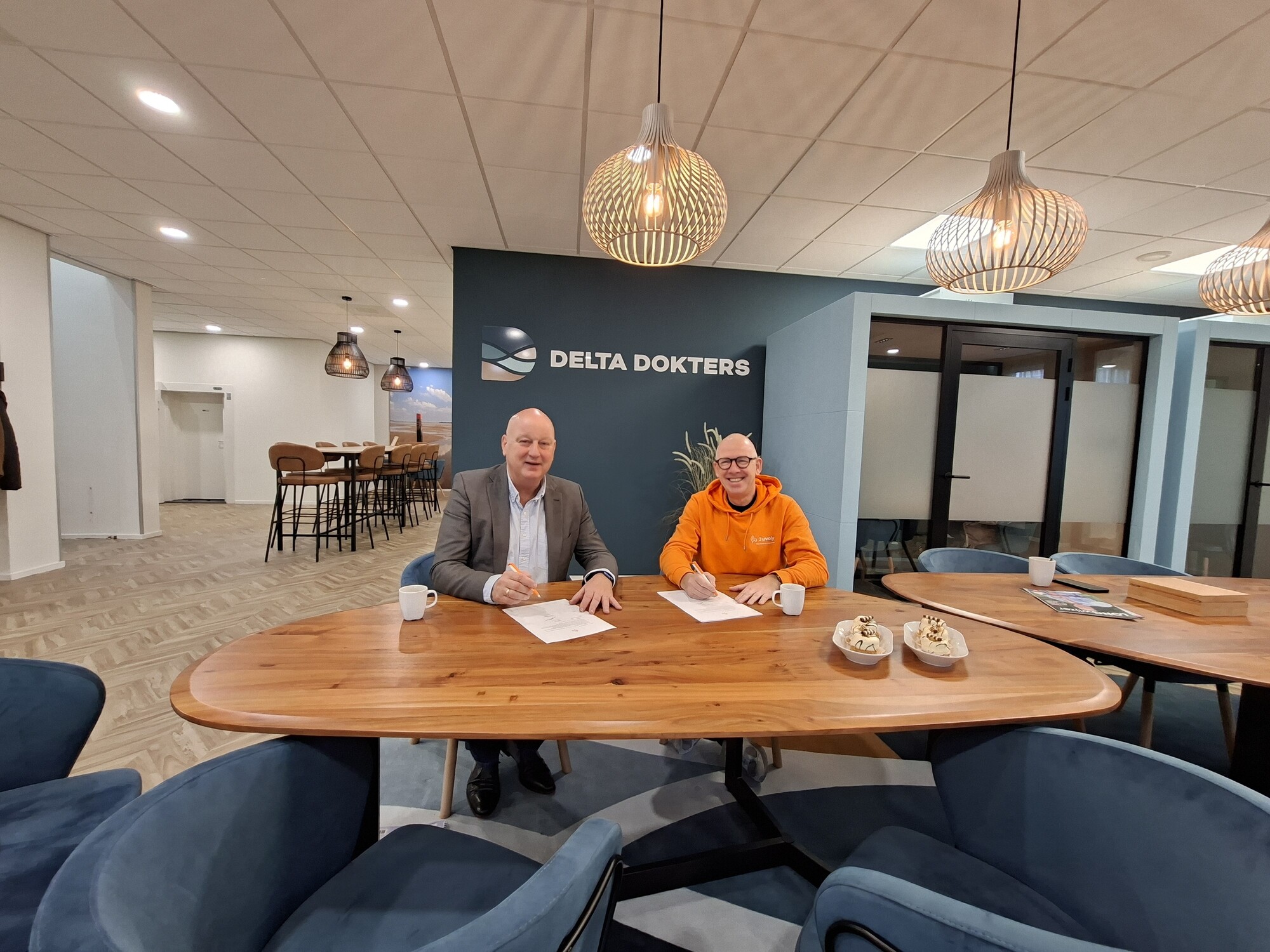 John Kreuze (directeur-bestuurder Delta Dokters) en Mark Versleijen (Juvoly) hebben een raamovereenkomst getekend. Hierin zijn prijsafspraken vastgelegd, zodat huisartsenpraktijken die zijn aangesloten bij Delta Dokters Juvoly Quickconsult tegen een gunstig tarief kunnen aanschaffen.